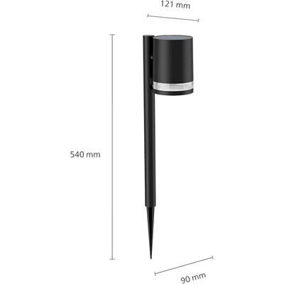 Die Philips Solar Sockelleuchte Fyce mit Erdspieß besticht durch ein hocheffizientes Solarpanel und integriertem Tageslichtsensor. Dadurch kann die Leuchte auch bei wenig Sonnenschein genügend Energie speichern, um bis zu 8 Stunden ausreichend Helligkeit zu spenden. Warmweißes Licht und eine robuste Bauweise mit Anti-UV Beschichtung sorgen für gute Beleuchtung bei allen Witterungsbedingungen. Keine Verkabelung oder Stromanschluss notwendig.