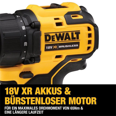 Der Akku-Bohrschrauber DCD708D2T von Dewalt arbeitet mit der XR Li-Ion Akku-Technologie, die höhere Leistung, kompaktere Abmessungen und eine längere Laufzeit pro Akku-Ladung ermöglicht. Die neueste Generation bürstenloser Motor-Technologie sorgt für höhere Lebensdauer, und die äußerst kompakte und ausbalancierte Bauweise mit geringem Gewicht erleichtert das Arbeiten.