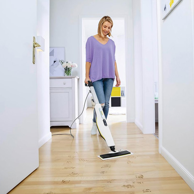 Der Dampfmopp Kärcher SC 3 Upright EasyFix 1.513-530.0 ist bereits nach nur 30 Sekunden Aufheizzeit startklar und reinigt völlig ohne Chemie mit einem kraftvollen Dampfausstoß und einer Heizleistung von 1.600 Watt. Der 0,5 Liter umfassende Tank ist jederzeit problemlos befüllbar für Nonstop-Dampf ohne Arbeitsunterbrechung und dank intelligenter Entkalkungskartusche wird das eingefüllte Wasser völlig automatisch von Kalk befreit. Der SC 3 Upright EasyFix ist auf nahezu allen Böden einsetzbar und bietet eine Flächenleistung von bis zu 60m². Mit der 3-stufigen voreingestellten Dampfmengenregulierung am Handgriff zur Reinigung verschiedener Oberflächen gibt es die Auswahlmöglichkeit der Bodenbelagssymbole Holz, Fliese und Teppich für die jeweils ideale Dampfmenge. Zudem entfernt er 99,99% der haushaltsüblichen Bakterien. Für alle, die es weich mögen: Selbst Teppichböden können mit dem Teppichgleiter bequem aufgefrischt werden.
