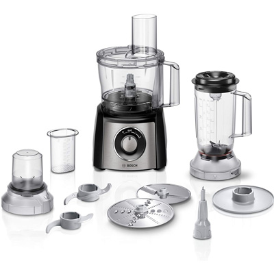 Die Bosch MultiTalent 3 Küchenmaschine mit mehr als 30 Funktionen macht Kochen und Backen zum Kinderspiel. Der starke Motor ermöglicht ein schnelles und einfaches Verarbeiten dank zwei Geschwindigkeitsstufen und Momentstufe. In Verbindung mit dem vielseitigen Zubehör sind mehr viele Funktionen möglich: raspeln, schneiden, mahlen, mixen und mehr. Die transparente Kunststoffschüssel bietet 2,3 l Fassungsvermögen sowie einen transparenten Deckel, eine Einfüllhilfe und einen Stopfer. Die Smart tool detection passt die Geschwindigkeit bei jedem Zubehör automatisch an. Das Zubehör kann einfach in der Schüssel verstaut werden. Durch das platzsparende Design passt die Maschine auch ideal in kleine Küchen.