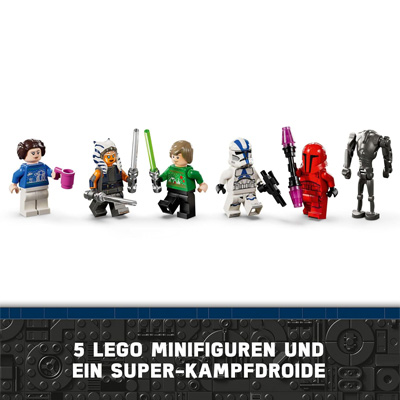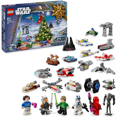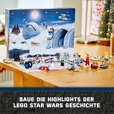Der Star Wars Adventskalender 2024 von Lego lässt Kinder ab 6 Jahren die Welt von Star Wars entdecken oder ältere Fans in Erinnerungen schwelgen: Er führt Lego-Fans durch die Geschichte der Star Wars-Sets von 1999 bis 2024. Der Kalender enthält Mini-Versionen verschiedener Lego-Modelle - zum Beispiel einen X-Wing in der Ausführung von 1999, einen Millennium Falken oder die Crimson Firehawk von 2024. Zu den Mini-Modellen zählen auch Darth Vaders Festung und ein Mini-Set aus dem ersten Star-Wars-Videospiel. Hinzu kommen sechs Minifiguren: Prinzessin Leia und Luke Skywalker in Weihnachts-Outfits, Ahsoka Tano, ein Clone Trooper der 501. Legion und ein Praetorian Guard sowie die Lego-Figur eines Super-Kampfdroiden.