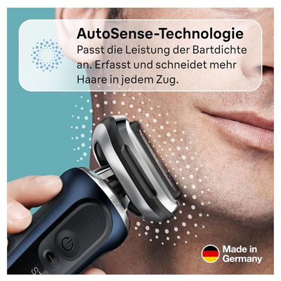 Dank der innovativen 360°-Anpassung passt sich der Rasierer perfekt den Konturen deines Gesichts an und sorgt so für eine präzise und angenehme Rasur. Die AutoSense-Technologie erkennt automatisch die Dichte deines Bartwuchses und passt die Geschwindigkeit des Scherkopfs entsprechend an, um ein optimales Ergebnis zu erzielen. Zudem ermöglicht die Schnellladefunktion ein schnelles Aufladen des Akkus, sodass du nie wieder auf deine morgendliche Rasur verzichten musst.