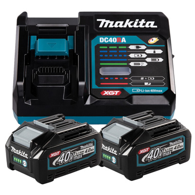 Das Makita Power Source Kit 40V kommt mit zwei Lithium-Ionen Akkus mit 40 Volt und 4,0 Ah Kapazität sowie einem dazu passenden Schnelladegerät DC40RC. Die Akkus versorgen Ihre Makita-Werkzeuge zuverlässig und ausdauernd mit Energie und sind mit dem im Set enthaltenen Schnellladegerät im Handumdrehen wieder aufgeladen.
