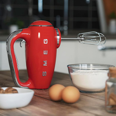 Retro-Design trifft auf innovative Technologie und Nutzerfreundlichkeit – mit dem Handmixer der Serie 50’s Style von Smeg holen Sie sich einen vielseitigen Leistungsträger in Ihre Küche, der mit seinem Vintage-Stil überzeugt. Das Bedienfeld blendet mit einem hintergrundbeleuchteten LED-Display Geschwindigkeit und Betriebszeit ein. Die Anzeige verschwindet beim Ausschalten und zeigt das Chrom des Griffs in seiner ganzen Eleganz. Über zwei Funktionstasten wählen Sie aus bis zu den Geschwindigkeitsstufen zum Mixen, Aufschlagen und die Turbofunktion.