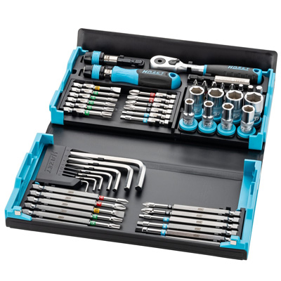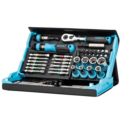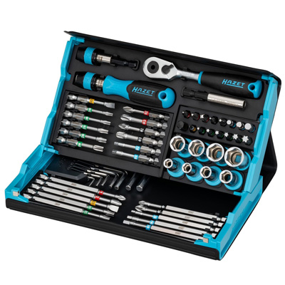 Der Bit-Satz 2200SC-32 von Hazet besteht aus einer 1/4" HiPer Feinzahn-Umschaltknarre für Bits, einem Steckgriff, 36 Bits mit verschiedenen Längen, Bit-Adaptern, einem Satz Winkelschraubendreher und 8 Stecknüssen mit Hazet Tractionsprofil. Im Satz sind Bits mit Schlitz-, Kreuzschlitz-, TORX- und Innensechskant-Profilen enthalten. Die Sechskant-Steckschlüsseleinsätze verfügen über das von Hazet speziell für Schraubenschlüssel und Steckschlüssel entwickelte Tractionsprofil ohne scharfe Kanten oder Spitzen.