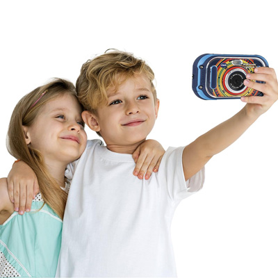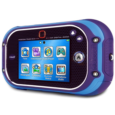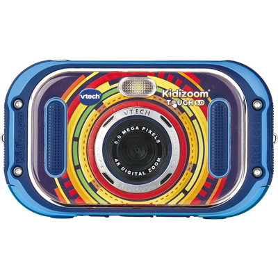 Die VTech KidiZoom Touch 5.0 ist eine stylische Digitalkamera für Kinder mit einem 8,9 cm großen Touch-Farbdisplay, integriertem Musik-Player, Film-Funktion, Bildbearbeitung, Spielen und mehr. Das robuste Gehäuse schützt die Kamera und sorgt für einen guten Halt in kleinen Händen. Die zusätzliche Kameralinse auf der Rückseite ermöglicht die Aufnahme von tollen Selbstporträts. Über das Touchdisplay können die kleinen Künstler ihre Bilder gleich mit dem Finger verändern und bemalen. Im Animationsstudio können aus einzelnen Fotos lustige Filme erstellt werden. Damit auch längere Shootings bewältigt werden können, ist der Speicher mit einer optional erhältlichen microSD-Karte erweiterbar. Die zahlreichen vorinstallierten Fotoeffekte und Spiele können mit weiteren spannenden Inhalten aus dem VTech Download Manager erweitert werden.