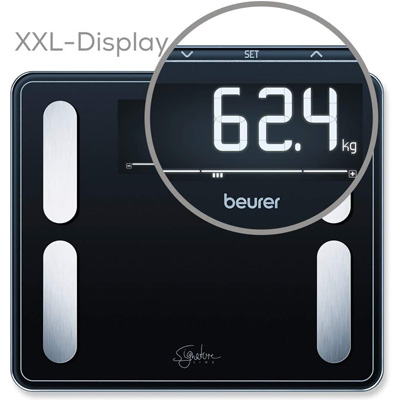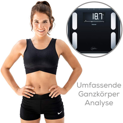 Egal, ob Sie Ihr Übergewicht reduzieren, den Fortschritt Ihres Muskelaufbaus verfolgen oder wegen Untergewichts zunehmen möchten – mit der BF 410 von Beurer haben Sie einen idealen Begleiter auf Ihrem Weg zum Ziel. Denn die Personenwaage kann viel mehr als nur Ihr Gewicht messen: Auf Basis der eingegebenen Personendaten ermittelt sie mittels BIA auch Ihren Körperfett-, Körperwasser- und Muskelanteil, sowie die Knochenmasse und berechnet unter Einbezug des Aktivitätsgrades auch Ihren Kalorienbedarf (AMR & BMR), sowie Ihren Body-Mass-Index (BMI). Und damit nicht genug, das moderne Design mit Invers-LCD-Display und Elektroden aus gebürstetem Stahl machen die Waage auch zu einem echten Hingucker in Ihrem Badezimmer.