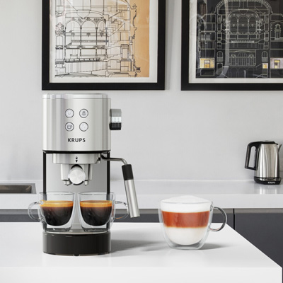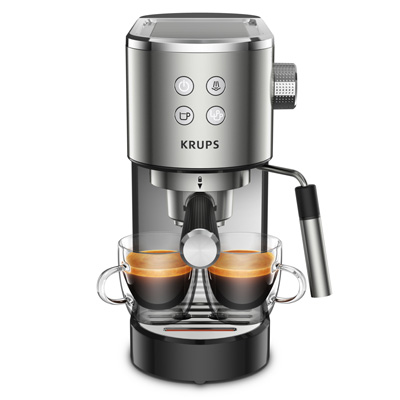 Die Krups Virtuoso XP442C Siebträgermaschine erzeugt ein bemerkenswertes Espresso-Aroma in einer stilvollen und kompakten Form. Diese hochwertige Premium-Espressomaschine ist aus einem langlebigen Edelstahlgehäuse mit elegantem, modernem Design hergestellt.