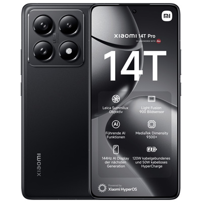Das Xiaomi 14T Pro kombiniert überzeugende Verarbeitung mit begeisternder Funktion. Dies gilt besonders für die Kamera: Die Kombination aus einem Leica Summilux Objektiv und einem Light Fusion 900 Bildsensor mit großen Dynamikbereich und hervorragender Rauschunterdrückung liefert begeisternde Ergebnisse - egal ob die Motive sich in der Nähe oder in der Ferne befinden oder ob sie schlecht oder gut ausgeleuchtet sind. Und insbesondere bei Porträts spielt das Kamerasystem mit dem Modus "Master Portrait" seine Stärken aus. So wird die Schönheit der Welt geradezu greifbar - auf einem 16,94 cm (6,67") großen AMOLED-Display mit einer maximalen Helligkeit von 4000 cd/m², einer Wiederholrate von 144 Hz und HDR-Unterstützung. Dabei stellt der MediaTek Dimensity 9300+ Achtkern-Prozessor in Kombination mit einer MediaTek NPU 790 reichlich Rechenleistung zur Verfügung. Eine breite Palette von KI-Funktionen liefert Hilfe beim Schreiben, Brainstormen und vielem mehr. Alles wurde von Xiaomi in ein ultraflaches Gehäuse verpackt, in dem auch der 5000 mAh große und mit 120 Watt aufladbare Akku Platz findet. Der Gehäuserahmen wurde aus einer hochfesten Aluminiumlegierung gefertigt - für überzeugende Sturzfestigkeit und ultradünnes Design.