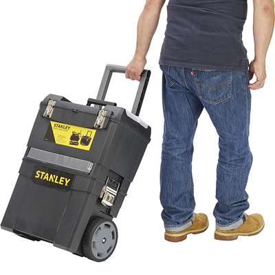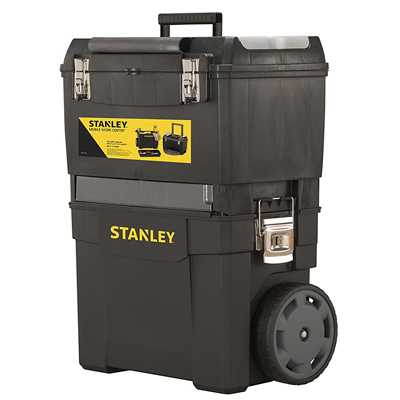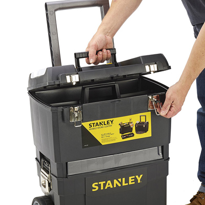 Die Stanley Rollende Werkstatt 1-93-968 besteht aus zwei separat verwendbaren Einheiten. Die untere extra geräumige Werkzeugbox mit 25 l Volumen bietet genug Raum um mehrere Werkzeuge transportsicher mit sich zu führen. Das große Volumen ist ideal geeignet für sperrige Werkzeuge. Mit dem entnehmbarem Träger haben Sie kleinere verschiedene Werkzeuge wie Zangen, Schraubendreher, Bohrer oder je nach Ihrer Bestückung vorhandenes Werkzeug sofort zur Hand und können es flexibel und schnell mobil zum Einsatzort transportieren.