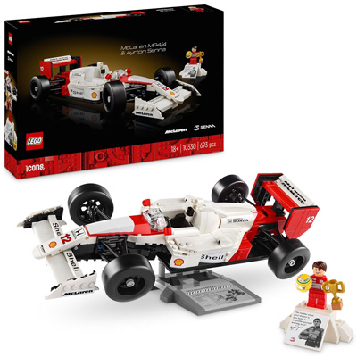 Ein tolles Set für Rennauto-Fans: Mit dem Lego Icons McLaren MP4/4 & Ayrton Senna entsteht ein maßstabsgetreues Modell des legendären Rennwagens von 1988. Das Original ist eines der erfolgreichsten Formel 1-Autos aller Zeiten - ein Meisterwerk der Renngeschichte. Das Modell wurde in Zusammenarbeit mit McLaren und der Marke SENNA entwickelt. Es verfügt über eine funktionierende Lenkung, eine Schubstreben-Aufhängung, einen verstellbaren Heckflügel, Slicks, Außenspiegel, eine Gangschaltung und eine detailgetreue Nachbildung des V6-Turbmotors. Mit dabei sind ein Ständer mit Infotafel und eine Ayrton Senna-Minifigur mit Ständer, der einem Siegerpodest nachempfunden ist. Eine Infotafel mit einem legendären Zitat sowie einem Foto von Ayrton Senna vervollständigen dieses Set, das in jedem Raum eine gute Figur macht. Das Modell besteht aus 693 Teilen.