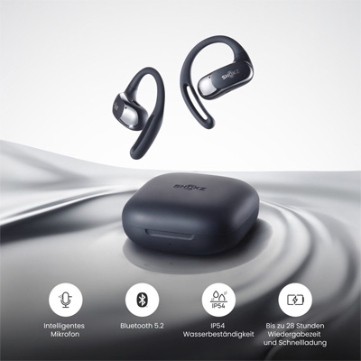 Der OpenFit Air Kopfhörer mit dem Open-Ear-Design von Shokz bietet dank des exklusiven Shokz Air-Ohrbügels mehr Tragekomfort und besseren Halt. Genießen Sie Ihre Playlist mit ausgewogenem Klang für Workouts sowie im Alltag. Bequemes Open-Ear-Design Shokz Air-Ohrbügel für stabilen Halt Offene Ohren für mehr Sicherheit. Bis zu 28 Stunden Wiedergabezeit für mehr Hörgenuss.