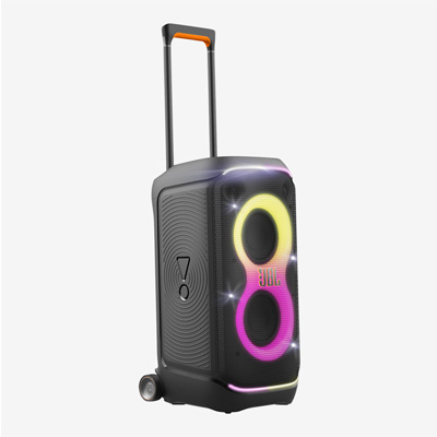 Mit der JBL PartyBox Stage 320 bringt man jede Party zum Strahlen. Denn zusätzlich zum leistungsstarken JBL Pro Sound bietet die Stage 320 eine Lichtshow mit Sternenlichtern, coolen Lichtspuren und Stroboskop-Effekten. Der Spritzwasserschutz macht die PartyBox zum idealen Begleiter, auch wenn es mal ein bisschen nass wird. Man will es richtig krachen lassen? Dann kann man einfach bis zu zwei Mikrofone oder eine Gitarre und ein Mikrofon anschließen, um seinen eigenen Sound abzuspielen. Sie bietet eine Wiedergabezeit von bis zu 18 Stunden und besitzt einen austauschbaren Akku. Mit der JBL PartyBox Stage 320 wird jede Party ein Erfolg!