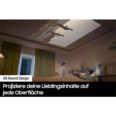 Der Samsung LFF3C The Freestyle Mini-Beamer ermöglicht mit seinem All Round Design eine Projektion in verschiedensten Winkeln, unabhängig von seiner Position. Durch die automatische Anpassung und Optimierung des Bilds mittels KeyStone ist dieses stets ideal ausgerichtet, sodass man sofort loslegen kann. Der Samsung The Freestyle bietet über seinen 5 Watt Lautsprecher einen imposanten 360° Klang, der sich einfach im Raum verteilt. Über das Samsung Smart- sowie Gaming Hub kann man zahlreiche Apps und Dienste über einen Ort verwalten und ist so für jede Situation gerüstet.