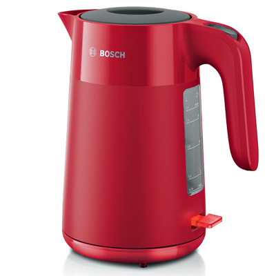 Der Wasserkocher TWK2M164 in "Deep Red" aus der Serie MyMoment überzeugt mit komfortabler Handhabung und Tassenanzeige. Das ansprechende Oberflächendesign mit matt-glänzenden Highlights bringt Leben und Farbe in die Küche. Der Deckel dieses praktischen Wasserkochers lässt sich ganz einfach per Knopfdruck öffnen. Dank der gut ablesbaren Wasserstandsanzeige in Liter und Anzahl Tassen wird Energie gespart, indem nur die Menge erhitzt wird, die tatsächlich benötigt wird. Die 360° Basisstation bietet mehr Flexibilität und eine besonders komfortable Bedienung. Der Wasserkocher schaltet sich automatisch aus, sobald das Wasser kocht. Zusätzlich ist der Wasserkocher 3-fach sicher, er schaltet sich automatisch bei Überhitzung oder zu geringer Füllmenge ab, oder wenn er von der Basisstation genommen wird.