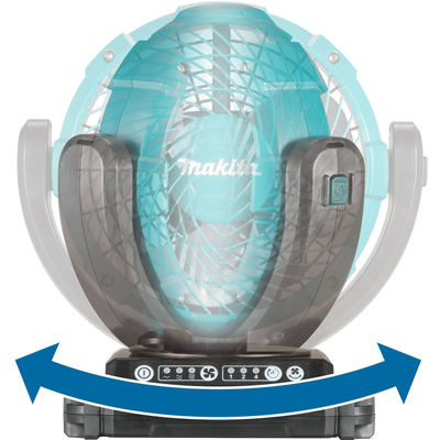 Die Oszillation des DCF102Z nach rechts und links beträgt ca. 90 °, wobei die Windgeschwindigkeit in 3 Stufen regelbar ist. Nach unten ist der Akku-Lüfter um 45 ° und nach oben um 90 ° neigbar. Für den optimalen Komfort kann der eingebaute Timer den Lüfter nach einer, zwei oder vier Stunden ausschalten. Zur optimalen Platzierung ist ein einstellbarer Haken am Griff zum ein-/aufhängen des Lüfters integriert, zudem kann er auf Stativen montiert werden.