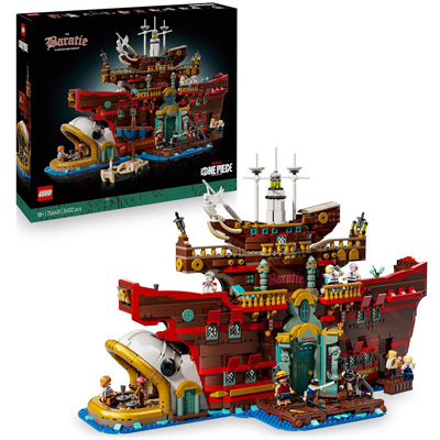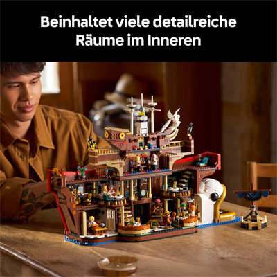 Ein großes Lego-Set für Anime-Fans und der Serie "One Piece": Aus 3402 Teilen entsteht eine Kulisse vieler toller Abenteuer aus "One Piece". Das schwimmende Restaurant Baratié ist nicht nur ein spannende Bauprojekt, sondern auch ein echter Blickfang! Es enthält viele gut zugängliche Räume, darunter auch die Küche und die Essbereiche, Jeffs Quartier und die Schatzkammer. Klassische Szenen aus "One Piece" können mit den 10 Lego-Minifiguren nachgestellt werden: Ruffy, Zorro, Nami, Lysop, Sanji, Jeff, Garp, Helmeppo, Corby und Mihawk sind mit dabei. Auch authentisches Zubehör wie eine Teleschnecke, Mihawks Boot oder die 5 Steckbriefe laden zum Spielen ein.