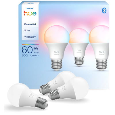 Das Philips Hue Essential White & Color Ambiance E27 3er-Set bietet dir vielseitige Beleuchtung für jeden Raum und jede Stimmung. Mit über 16 Millionen Farben und verschiedenen Weißtönen kannst du deine Räume flexibel gestalten – von warmem, gemütlichem Licht bis hin zu kühlem, konzentriertem Arbeitslicht. Die Lampen lassen sich bequem per App, Bluetooth oder über die Hue Bridge steuern und automatisieren. Szenen, Zeitpläne und individuelle Routinen ermöglichen dir, dein Zuhause perfekt an deinen Alltag anzupassen. Dank E27-Fassung sind die Leuchten schnell installiert und kompatibel mit vielen gängigen Lampen. Ob Entspannung, Entertainment oder Alltag – dieses Set bringt intelligente, farbenfrohe Lichtstimmung in dein Zuhause.