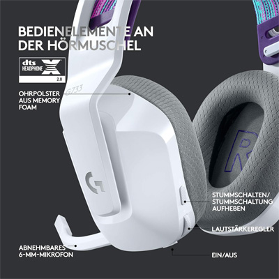 Mit dem G733 Lightspeed hat man eine absolute Freiheit mit einer Reichweite von bis zu 20 m und kabelloser Lightspeed-Audioübertragung. Spiele mit bis zu 20 Stunden Akkulaufzeit. Personalisiere deine Headset-Beleuchtung mit dem gesamten Spektrum von 16,8 Millionen Farben. Spiele mit farbiger, frontal ausgerichteter Zwei-Zonen-RGB-Beleuchtung und wähle aus voreingestellten Animationen oder erstelle deine eigenen mit der G HUB-Software.