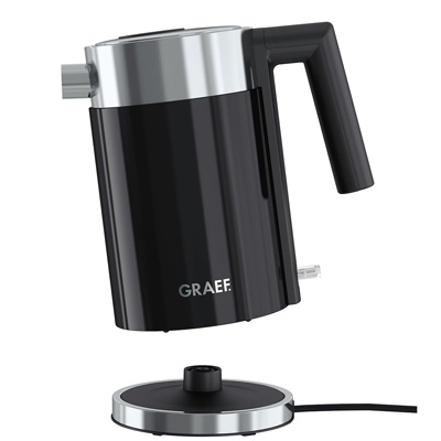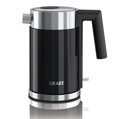 Der Wasserkocher WK 402 von Graef in schwarz besticht durch sein einzigartiges Graef Design. Das Gehäuse aus Kunststoff/Edelstahl ist klein und kompakt und fasst bis zu einem Liter. Der innere Behälter mit Füllmengenmakierung und der Kalkfilter des Wasserkocher WK 402 sind komplett aus Edelstahl gefertigt. Durch die Lift-Off Abschaltung, die automatische Abschaltung sowie dem Trockengeh- und Überhitzungsschutz lässt der Wasserkocher WK 402 auch in Sachen Sicherheit keine Wünsche offen.