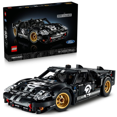 Der Lego Technic 1966 Ford GT40 MKII Rennwagen (42223) ist das Modell einer Ikone des Motorsports, mit dem erwachsene Fans gerne noch einmal die einstigen Siege feiern werden. Autoliebhaber, Motorsportfans und begeisterte Baufans ab 18 Jahren können mit diesem wirklichkeitsgetreuen Modell des legendären Rennautos noch einmal den Geist des prestigeträchtigsten Langstreckenrennens der Welt heraufbeschwören. Freu dich darauf, all die Details und Funktionen dieses Sets zu entdecken. Lenke das Modell mit dem Knauf auf dem Autodach. Öffne die Türen und bewundere die Rennlackierung in Schwarz und Silber, die dem echten Siegerauto nachempfunden ist. Öffne die Motorhaube mit dem Hebel innen, um den V8-Motor zu bestaunen. Deinen fertigen Rennwagen wirst du gerne in deinem Wohnzimmer oder Büro ausstellen.