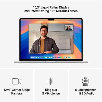 Das MacBook Air ist aus gutem Grund der beliebteste Laptop der Welt. Genau genommen sind es sogar ziemlich viele Gründe. Es liefert bis zu 18 Stunden Batterielaufzeit. Der M4 Chip sorgt für Performance auf einem neuen Level beim Arbeiten und Spielen. Apple Intelligence ist integriert, damit du Dinge viel leichter erledigen kannst. Und es kommt jetzt in der neuen Farbe Himmelblau. Das MacBook Air hat eine perfekte mobile Größe, du kannst es also überallhin mitnehmen – und so ziemlich alles damit machen. Und jedes hat ein passendes MagSafe Ladekabel.
