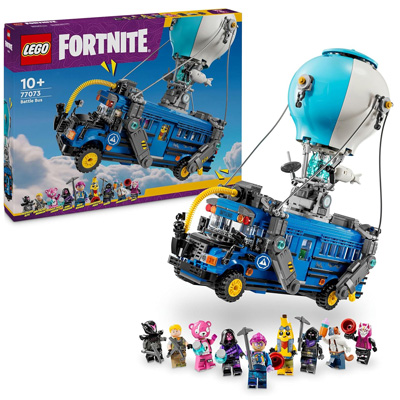 Der Lego Fortnite Schlachtenbus ist ein 954-teiliges Bauset zum beliebten Videospiel "Lego Fortnite", mit dem Fans ab 10 Jahren besonders kreativ bauen und spielen können. Das Modell des Schlachtenbus verfügt über drehbare Räder, ein abnehmbares Dach und den unverwechselbaren Heißluftballon. Doch das ist erst der Anfang! Im fertigen Bus können die Fans dann nicht nur legendäre Ausrüstung entdecken, unter anderem Schlürfsaft, einen Greifer, Spitzhacken und Schubsaft, sondern auch neun Minifiguren (Raufboldranger, Abenteuer-Schali, Farbenbomber, Kuschelbeauftragte, Würfel-Assassinin, Elite-Eindringling, Drift, Muskelkater und Raven) in legendären Fortnite Outfits. Die Minifiguren kann man für kreative Rollenspiele in den Bus setzen, um das Abenteuer zum Leben zu erwecken.