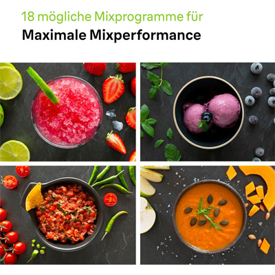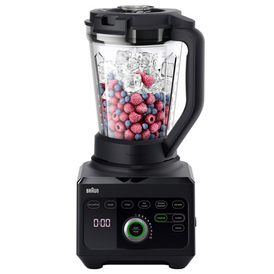 Brauns Standmixer PowerBlend 9 ist ein leistungsstarker Küchenperformer mit einer ausgeklügelten Palette neuer Technologien. Mit iTextureControl können die Mischungen von sehr glatt bis grob angepasst werden, und 18 Lebensmittelprogramme automatisieren die Texturanpassung in drei mühelosen Schritten. Die einzigartig konstruierte dreieckige TriAction Technology Kanne liefert 60% feineres und 4x schnelleres Mixen. 1.600 Watt Leistung und bis zu 45.000 U/min sorgen für hochwertige Mixergebnisse mit einem in Deutschland hergestellten PrecisionEdge-Messer, das selbst die härtesten Zutaten mühelos emulgiert. Die Funktion "Heiße Suppe" ist ein Programm für glatte Suppen, um die Zutaten durch die Reibung des Messers in dem hitzebeständigen Mixbehälter auf Serviertemperatur zu bringen. Das Reinigungsprogramm erleichtert den anschließenden Reinigungsvorgang mit nur einem Tastendruck.