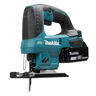 Die Makita DJV184Z Akku-Pendelhubstichsäge nutzt dank ihres bürstenlosen Motors die 18-Volt-Akkukapazität noch effizienter als herkömmliche Elektromotoren. Der Sanftanlauf ermöglicht präzises Ansetzen und die LED-Beleuchtung sorgt für gute Sicht auf die Schnittstelle. Die DJV184Z überzeugt weiterhin mit einer stufenlos regelbaren Hubzahl von 0-3.000 U/min und einem werkzeuglosen Blattwechsel. Der 3-stufige Pendelhub ermöglicht schnelle Schnitte.