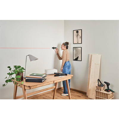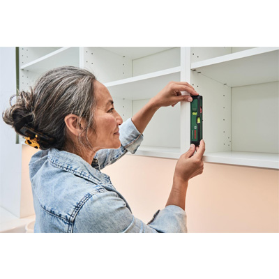 Die Bosch UniversalWallLevel Laser-Wasserwaage ist einfach zu bedienen und verfügt über ein flaches Format, das die Funktionen eines Laser-Niveaus mit denen eines Linienlasers praktisch kombiniert. Die Bosch UniversalWallLevel ist ideal für eine Vielzahl von Aufgaben und bietet eine Präzision von ± 0,5 mm/m, während es Laserlinien oder horizontale, vertikale oder diagonale Punkte projiziert. Dieses praktische Werkzeug eignet sich hervorragend zum Befestigen von Auflage-Ringen, Ausrichten von Schränken sowie zum Ausrichten von Tischen und Regalen. Wenn es als Laserpointer verwendet wird, überträgt es präzise die korrekte Höhe für die Installation von Schaltern und Stromversorgungen im Schaltschrank. Dank einer flexiblen Wandhalterung und Magneten am Werkzeug, kann die UniversalWallLevel sicher und bequem auf allen Oberflächen befestigt werden.