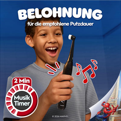 Die Oral-B iO Kids elektrische Zahnbürste sorgt für eine sanfte, effektive Reinigung und wurde mit ZahnärztInnen für Kinder ab 6 Jahren entwickelt und bestätigt. Sie verfügt über 3 Putzmodi, inkl. einem einzigartigen, kinderfreundlichen Super Sensitiv Modus, um stark gegen Karies, aber sanft zum Zahnfleisch zu sein und dabei mehr Plaque zu entfernen als eine herkömmliche Handzahnbürste. Der 2-Minuten-Musik-Timer und der Zugang zur Disney Magic Timer App sorgen für mehr Spaß beim Zähneputzen und helfen Kindern, gesunde Gewohnheiten fürs Leben zu erlernen.