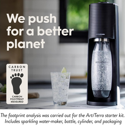 Der SodaStream Terra Wassersprudler überzeugt neben seinem eleganten Design durch hohen Bedienungskomfort. Ein breiter Knopf und der neue Snap-Lock-Verschluss machen das Sprudeln noch einfacher. Er ist zudem mit der SodaStream Quick Connect Zylinder Technologie ausgestattet - ein Mechanismus, der das Einsetzen des Zylinders erheblich vereinfacht. Der Wassersprudler Terra passt mit seiner eleganten Optik aus ansprechender Mischung aus Streifenoptik, Hochglanz und mattem Finish in jede Küche und ist in den Farben schwarz und weiß erhältlich. Genießen Sie frisch gesprudeltes Wasser - ganz ohne Schleppen.